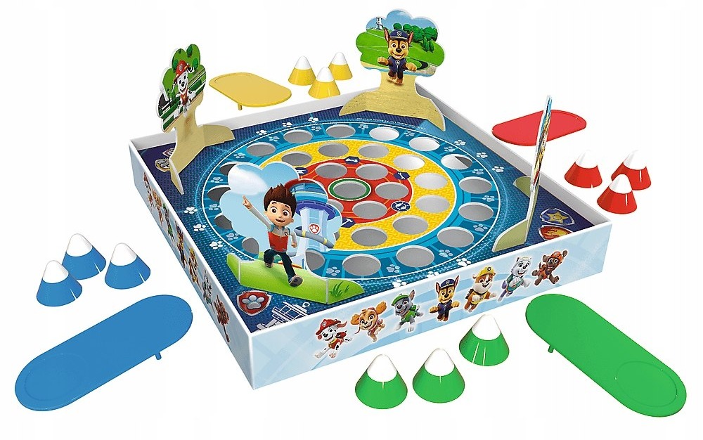 Ta wersja gry od firmy Trefl jest wyjątkowa, ponieważ graczom towarzyszą urocze postaci z popularnej serii - Psi Patrol. Celem jest umieszczenie wszystkich stożkowych elementów - skoczków, w wybranym przez siebie kolorze w otworach w planszy. A zatem precyzja, opanowanie, celność i odrobina szczęścia będą głównymi czynnikami gry.