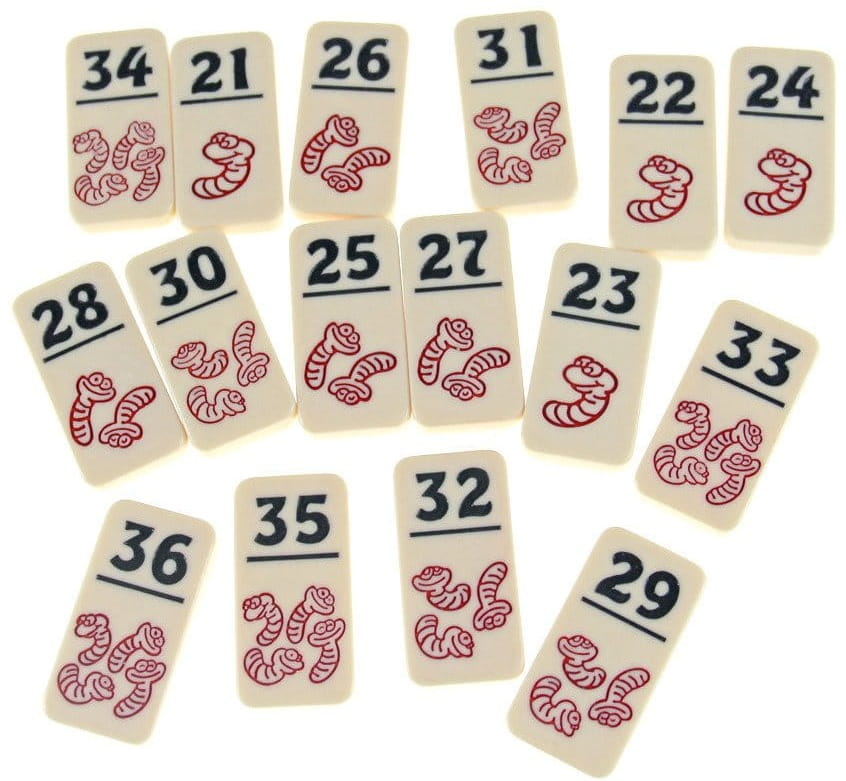 Ułóż 16 płytek w kolejności od najmniejszej do największej wartości (21-36). Na płytkach narysowane są zabawne robale, a im większa wartość płytki tym więcej robaczków. Maksymalnie na jednej płytce może ich być nawet cztery!