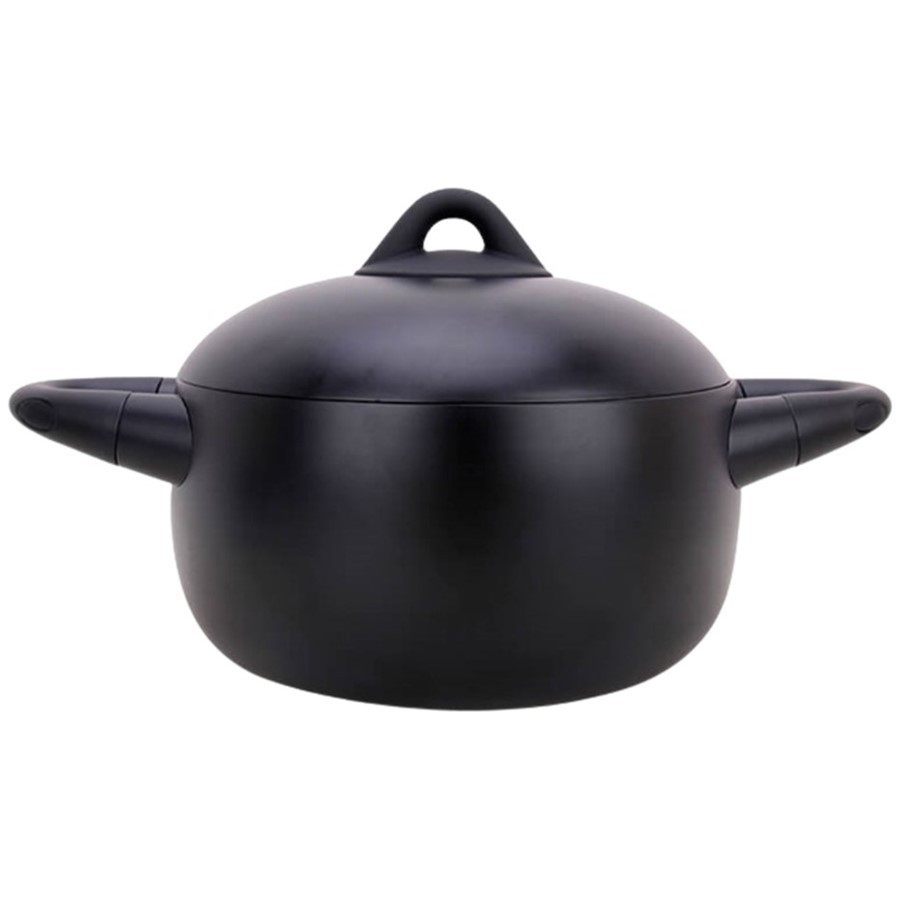 Uchwyty garnka oraz pokrywki zostały pokryte silikonem, co zapewnia bezpieczne i komfortowe chwytanie, nawet podczas gotowania. Wyglądem przypomina kociołek, co nadaje mu wyjątkowego charakteru i sprawia, że doskonale się prezentuje. Dodatkowo można używać go w piekarniku, co rozszerza jego zastosowanie