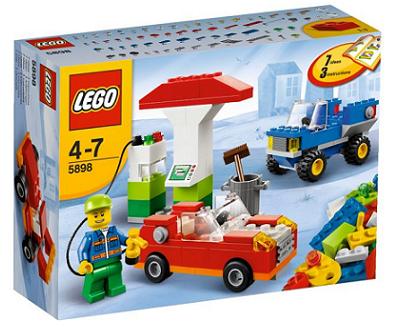 LEGO 5898 Zestaw do budowy samochodów,Dzieki zestawowi do budowy samochodów można tworzyć wiele odjazdowych pojazdów.W zestawie: minifigurka stacji benzynowej, instrukcja-pomysły na nieograniczoną twórczą zabawę.