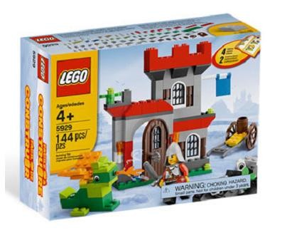 Lego 5929 Zamkowy Zestaw z serii Bricks & More. Zestaw pozwala na wybudowanie małego zamku, smoka ziejącego ogniem oraz konia z powozem. W zestawie znajdziemy figurkę rycerza z mieczem.