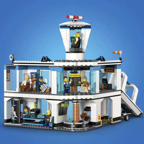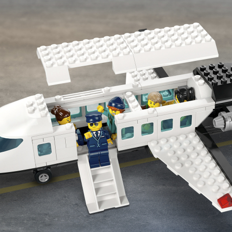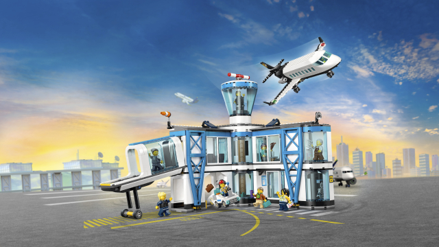 Dzieci mogą przepuszczać bagaż przez skaner, obracać bramkę wykrywającą metal, aby odsłonić szkielet widoczny na zdjęciu rentgenowskim, oraz zmieniać tablicę odlotów, aby wybrać jedno z czterech miejsc docelowych. Zestaw zawiera również samolot pasażerski do zbudowania, ze szczegółowo odwzorowaną kabiną i składanymi schodkami, a także holownik lotniskowy i rękaw pasażerski. Wystarczy dodać dziewięć minifigurek, aby zapewnić wiele godzin kreatywnej zabawy.