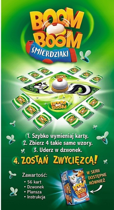 W Boom Boom gracze starają się uzbierać zestawy tych samych Śmierdziaków. Gracze wymieniają jednocześnie swoje karty z kartami na planszy. Po złapaniu 4 takich samych Śmierdziaków gracz uderza w dzwonek i sygnalizuje zebranie gotowego stosu. Gracze mogą polować na karty tego samego typu, dzięki czemu rozgrywka jest jeszcze bardziej emocjonująca. Gracz, który zbierze wszystkie swoje zestawy Śmierdziaków, zostaje zwycięzcą!